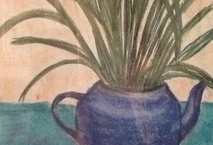 Study in pastel: bowl of irises